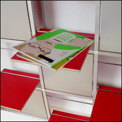 Clip, clap, open up and close together. Parallel in a row or stand alone, this additive surface offers numerous combination possibilities. Designed to display small products and adapt to varying room situations. This shelf can satisfy individual preferences and builds an overall flexible and re-configurable system. May 2001 Foldingrack Final work 11 l 11