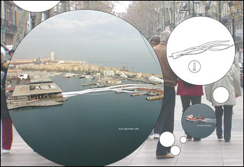 strasse "La Rambla" in Barcelona und deren Erweiterung bzw. Verlängerung über ein Hafenbecken Richtung Meer.