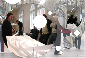 strasse "La Rambla" in Barcelona und deren Erweiterung bzw. Verlängerung über ein Hafenbecken Richtung Meer.