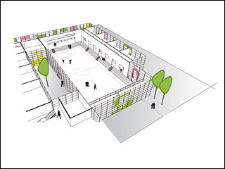 Mit Hilfe einer geeigneten Strategie wurden sämtliche Komponenten einer Schule, wie Klassenräume, Aula, Sporthalle, diverse Aufenthalts-flächen etc. in ein eindeutiges System gebracht. Februar 2008 Willy Brandt Schule, Warschau educational spaces* Entwerfen Sporthalle 12 l 18