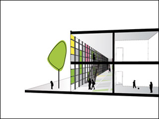 Mit Hilfe einer geeigneten Strategie wurden sämtliche Komponenten einer Schule, wie Klassenräume, Aula, Sporthalle, diverse Aufenthalts-flächen etc. in ein eindeutiges System gebracht. Februar 2008 Willy Brandt Schule, Warschau educational spaces* Entwerfen Flur (Außenfassade) 14 l 18